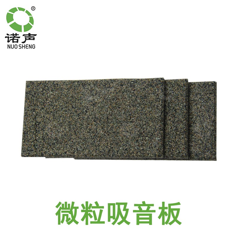 諾聲微粒吸音板也叫微粒吸聲板是由精選的天然的砂粒,通過膠凝材料聚合起來形成的特定目數的硬質穿孔砂巖吸音板,可根據多孔吸音材料及微孔共振吸聲機理,通過調整孔隙大小、板材厚度及板后空腔大小,實現其頻率特性可調的功能,滿足不同頻段的吸聲設計要求。